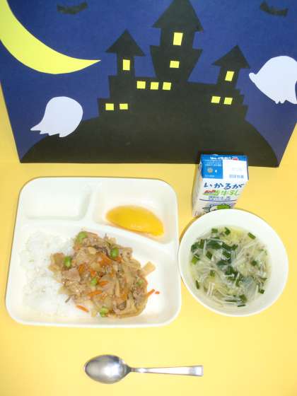 ピリ辛丼は、豚肉を主材に、たまねぎ、たけのこ、にんじん、青みにむき枝豆を使っています。トウバンジャンで辛みをつけ、砂糖、こしょう、こい口しょうゆ、赤みそで味付けし、ご飯にからみやすいようにでんぷんでとろみをつけています。