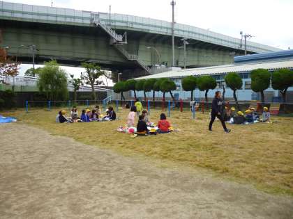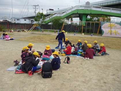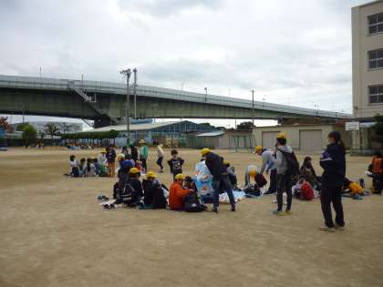 遠足が延期になったのでお弁当を運動場で食べました。