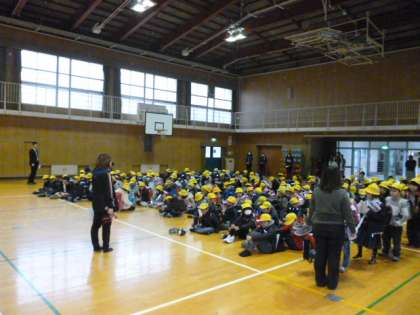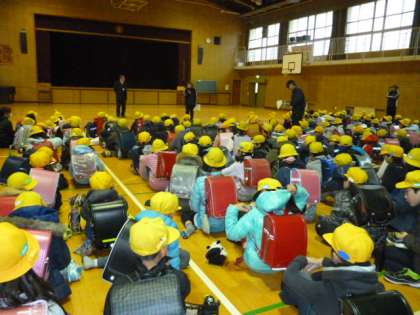 最終は講堂に集合し、各町会にわかれ、集団下校を行いました。