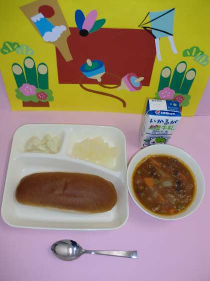 カリフラワーはヨーロッパで約2000年も前に作られ、食べていました。日本に伝わったのは、明治時代と言われており、現在では茨城県、熊本県などで多く栽培されています。ビーフシチューには、給食室で花形に切り抜いたラッキーにんじんが入っています。