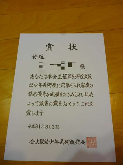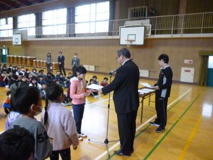 今日の児童朝会では、幼少年美術展に出品し、受賞した児童の表彰を行いました。