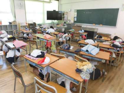 津波がくる想定で、4階の教室に移動しました。