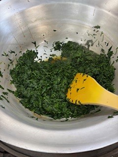 「ほうれんそうのおひたし」は、ゆでたほうれんそうに砂糖、うすくちしょうゆで作った調味液をかけ、あえます。
