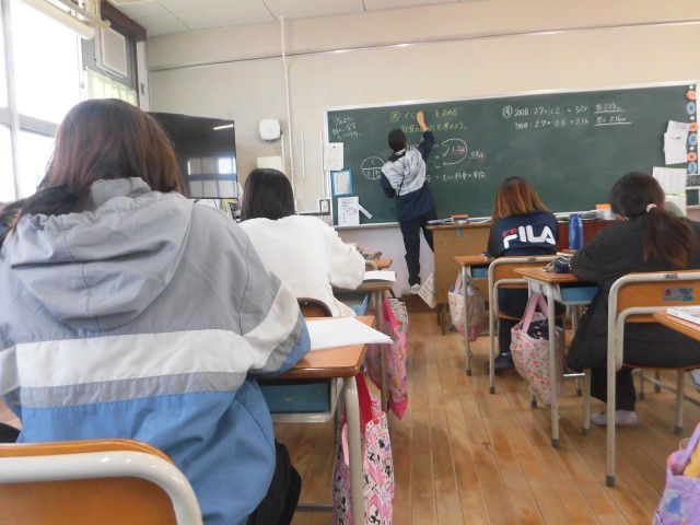 3時間目は算数で単元「倍を表す小数」について学習しました。子どもたちは担任の先生の話をよく聞いて自分の考えを発表していました。黒板の字も丁寧にノートに書いていました。