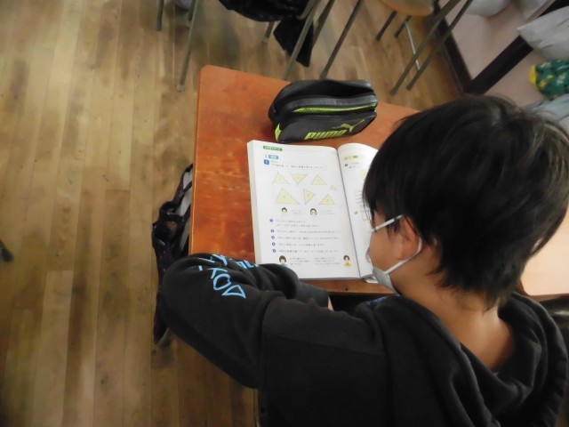 2時間目は算数で2学期の復習をしました。教科書の問題を解いて、1問ずつ答え合わせをしました。