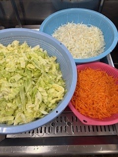 「中華スープ」は、鶏肉、とうふ、キャベツ、たまねぎ、にんじんを使用します。
