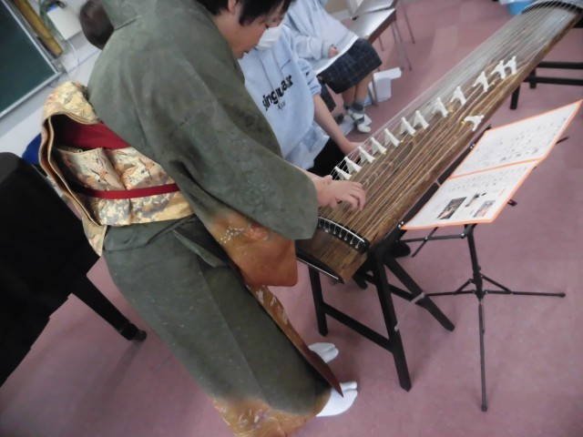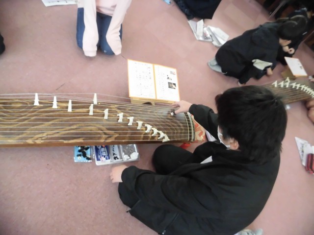 6年生が琴の体験学習をしました。琴の先生に来ていただき、琴の弾き方を丁寧に教えていただきました。子ども達は興味を持って、楽しく学習できました。