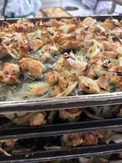「鶏肉の塩こうじ焼き」は、鶏肉に塩こうじで下味をつけ、たまねぎを混ぜ合わせ、焼き物機で焼きます。