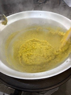 「くりきんとん」は、おせち料理の一品です。煮くずれるまでやわらかく煮たさつまいもにくりを加え、砂糖、みりん、塩で味つけして煮含めます。