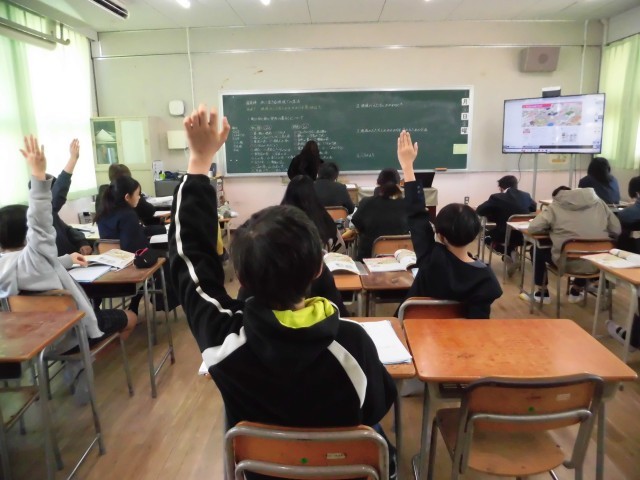 6年生は、3時間目の家庭科で単元「共に生きる地域での生活」を勉強しました。学習中は、積極的に手を挙げて発表していました。
