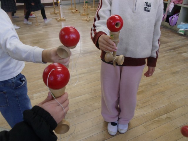 1年生は、生活科の時間に、けん玉とわなげをしました。