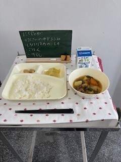 「肉じゃが」は、牛肉、じゃがいも、糸こんにゃく、たまねぎ、にんじん、青みにさんどまめを使用した定番の煮物です。