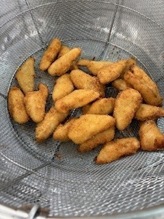 ・「たらのフライ」は、冷凍のまま170℃のなたね油であげます。
