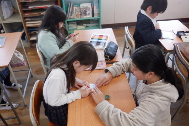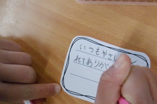 卒業を祝う会で6年生へ渡す、メッセージカードを書きました。
