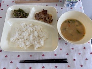 今日の給食には、苦手な子が多いピーマンとじゃこを炒めた「じゃこピーマン」が登場しました。骨や歯をじょうぶにする働きがあるカルシウムが多くふくまれているので、積極的に取り入れたい食材の一つです。