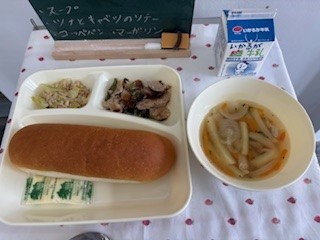 「スープ」は、鶏肉で旨みを出し、じゃがいも、たまねぎ、にんじん、彩りにパセリを使用しています。