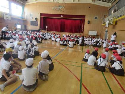 子どもたちは、たてわり班(1〜6年の子どもたちが