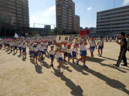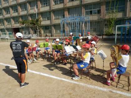 朝から全体練習をしました。今日は、晴天のもと、開会式、閉会式の練習でした。入場行進は、金管バンドクラブの伴奏にのって元気よく入場することができました。自分たちの座席の位置の確認もしました。今年度の運動会から、保護者の方々の観覧方法が変わります。学校からお配りしたプリントをどうぞご確認ください。