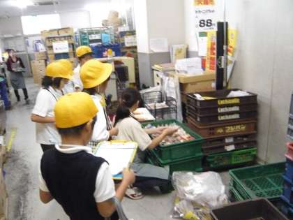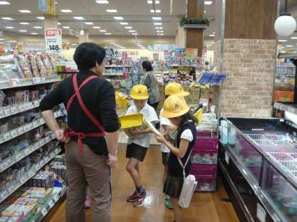3年生は、社会科「店ではたらく人びと」の学習で、近くのスーパーマーケットに社会見学に出かけました。店の裏側に入らせてもらって見学したり、店員の方々にインタビューしたりして、スーパーマーケットについての学習を深めてきました。