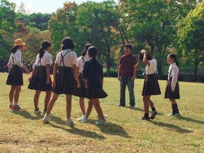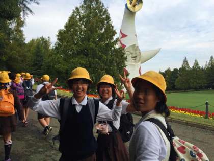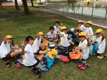 午後は、万博公園の広い芝生の上でお弁当を食べました。食事のあとは、晴天のもとで、のびのびと体を動かして楽しく過ごしました。