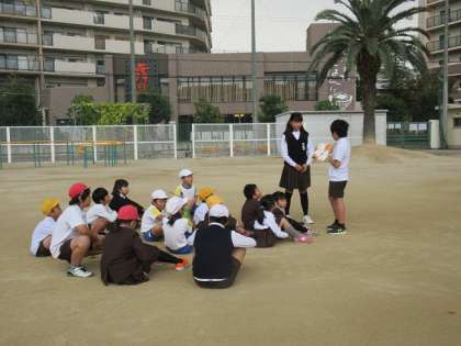 20分休みに、たてわり班に分かれて