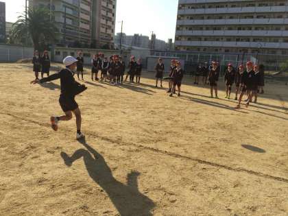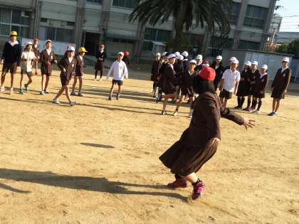 今日の運動委員会主催のスポーツ集会は、6年生が参加する「ドッジビー」でした。ボールの代わりにフリスビーを使って、ドッジボールのルールで楽しむニュースポーツです。ボールを投げるようにコントロールしにくいフリスビーでしたが、みんな楽しんで遊んでいました。