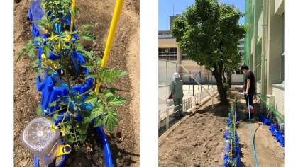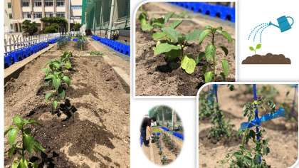 お休みの間、先生たちが枯れないようにとお世話をしています。