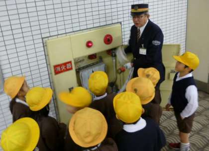 2年生は、地下鉄に乗って四ツ橋駅へ社会見学に出かけました。駅員さんに、電車の乗り方やマナー、駅構内の設備などの説明を受けました。券売機の仕組みや、自動改札機の内部など、普段見ることのできない駅の裏側を、大変興味深く見学することができました。