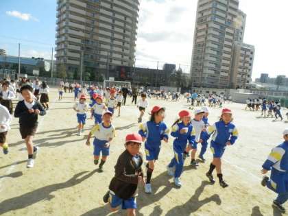 20分休憩に、かけあしタイムを実施しました。走ることへの関心を高め、体を動かすことの喜びを感じながら、体力の向上をはかることを目標に今年度も実施しました。自分のペースを保ちながら、全校児童が運動場を元気よく走りました。