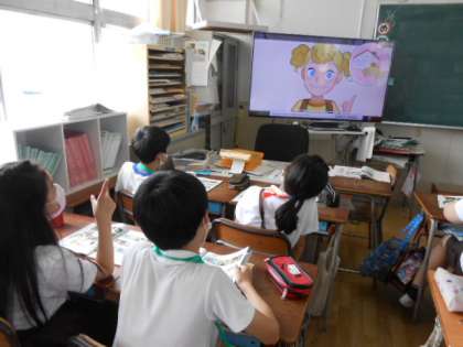 6年生は、「What you want to watch?」というテーマで英語の学習を行いました。