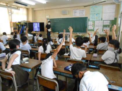 夏休み中に先生が収穫し、乾燥させたものをみんなで観察しました。