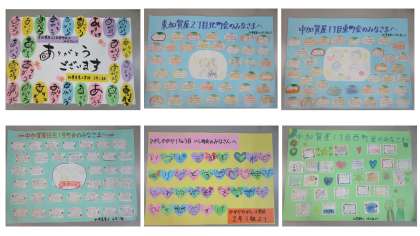 また、他のクラスのメッセージカードも見られるように職員室前の掲示板に写真を掲示しました。