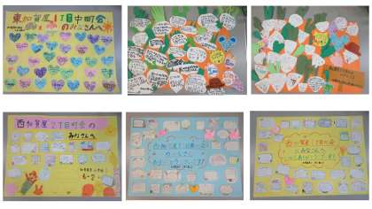 今年は、全校朝会の場で手渡すことはできませんでしたが、運営委員会の子ども達からの挨拶状とともに、各町会の会長さんにお届けしました。