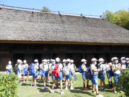午前中は、「民家集落博物館」で、全国各地から移設された昔の民家を見学しました。茅葺屋根や、かまど、いろりなど、昔の暮らしに触れることができました。