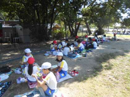 午後からは、たて割り班に分かれて行いました。お弁当を食べたり、班遊びを行いました。