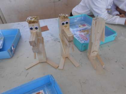 木切れにくぎを打ち付け、自分の好きな動物を作りました。