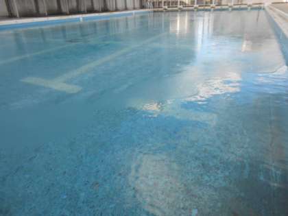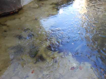 もしやと思いプールに行くと全面ではありませんでしたが、氷が張っていました。