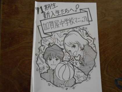加賀屋中の生徒会の人たちが、6年生に向けて加賀屋中学の紹介DVDとパンフレットを作ってくれました。