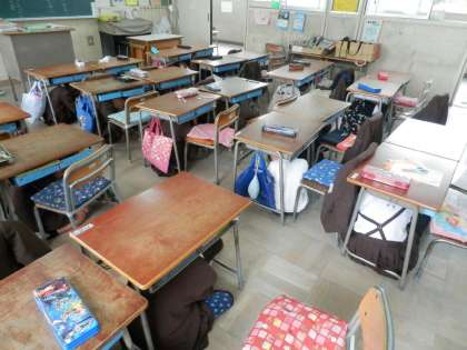 休み時間に地震が発生したことを想定した避難訓練を実施しました。子どもたちが自ら判断して、安全を確保した行動をとれるようにすることがねらいです。3時間目のあとの休み時間中に、非常ベルと緊急放送がなると、運動場で遊んでいた子どもたちは、自主的に運動場の中央に集まって身をかがめる姿勢を取ることができました。廊下にいた児童は窓や壁からはなれ、体を低くし頭部を守る姿勢を取っていました。その後、運動場に避難し、集合して話を聞きました。実際の地震に備えた訓練をすすめることができました。