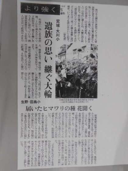 このヒマワリの種は、平成23年3月11日に発生した、東日本大震災で被災された宮城県大川小学校の児童の保護者の方が、「子どもたちが生きた証に」と、学校近くの高台に植えられたものの子孫にあたります。