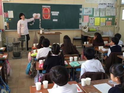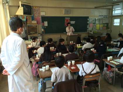 2年生を対象に、歯みがき指導を行いました。今日は、学校歯科医と教育委員会から歯科衛生士2名の方が来られました。歯こうとむし歯の関係や、歯のみがき方などを教わったあと、赤い染め出しの薬を前歯につけて、歯みがきが上手にできているかのチェックをしました。指導後の「歯をしっかりみがいていきたい」と多くの子どもが感想を書いていました。