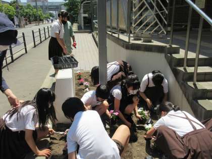 今年度からは、管理作業員さんが行ってくれていた花の植え替えをお手伝いし、活動の場を広げることになりました。