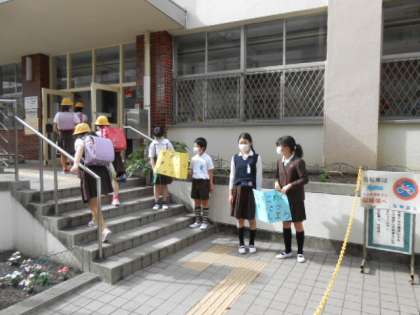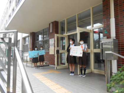 この間の登校時には、児童会の運営委員が、玄関に立って朝の挨拶を促してくれています。