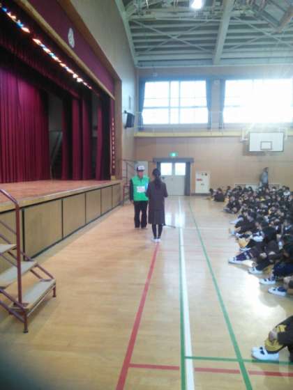 見守り隊の方がお話をされる間、子どもたちは、真剣にお話を聞いていました。児童代表のあいさつのあと、全員で「よろしくお願いします」と、またまた元気にあいさつができていました。