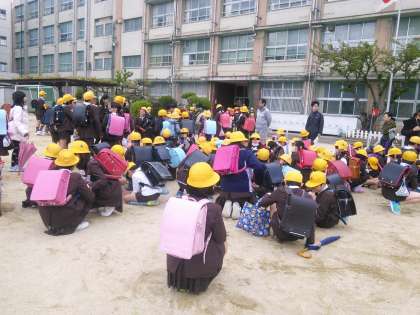 そのあと、地域班ごとに整列し直し、下校しました。帰り際には、校長先生と元気よく「さようなら」とあいさつを交わしている子どもたちでした。