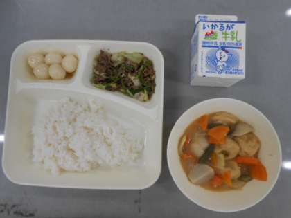 今日の給食に行事献立の「みたらしだんご」が出ました。