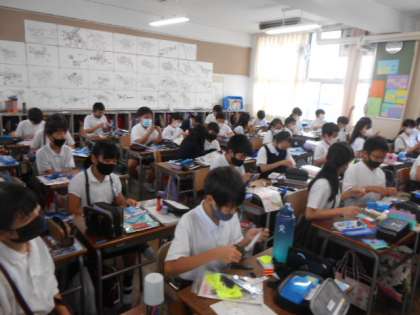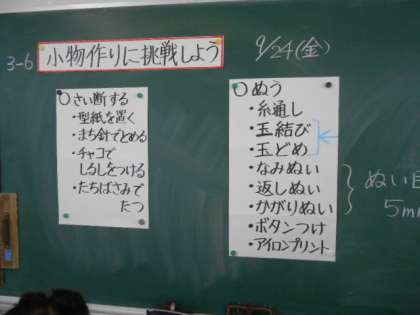 5年生が家庭科の時間に、フェルトを使って小物づくりを行いました。