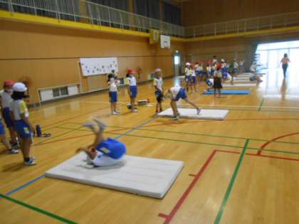 1,2年生はマット遊びでしたが、3年生からは、器械運動として、本格的に技に挑戦します。