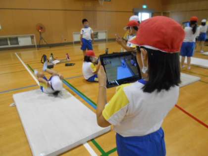 友だちとアドバイスをし合い、技ができるように練習をしました。