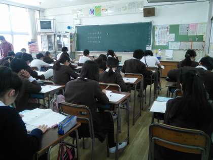 40分間という区切りの中で、冊子状になった問題用紙と別紙の解答用紙をにらめっこ。集中して取り組んでいるので、一つのテストが終わるごとに、「ふうっ」と大きな安堵をついています。